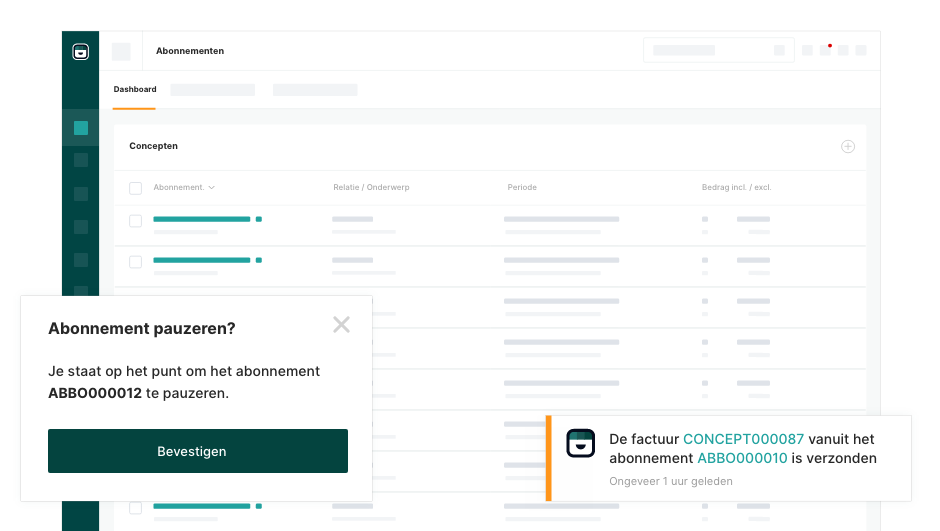 Een abonnement waar je aan vast zit, dat willen we zelf ook niet. Logisch dus dat een abonnement tussentijds kan wijzigen. Je kunt abonnementen periodiek terug laten komen of na een aantal keren automatisch laten stoppen, maar je kunt hem ook pauzeren of opzeggen. Is er een tariefverhoging of verandering of wordt er een dienst toegevoegd aan het abonnement? Je bepaalt het zelf. Gebruik je producten en/of diensten waarvan je prijs wijzigt? Je voert de wijzigingen met één selectievakje door op al je abonnementen.