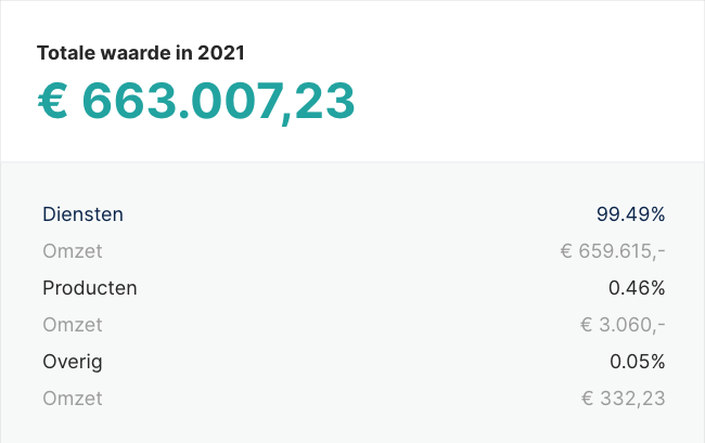 Je abonnementen lopen over het algemeen over een bepaalde periode en vast niet allemaal tegelijk. In de statistieken van je abonnementen vind je het aantal actieve abonnementen, concepten, gepauzeerde en inactieve abonnementen terug. Je leest in één overzicht uit wat de omzet op je diensten en producten is en om welke verhoudingen in percentages dit gaat. De getoonde statistieken tonen het huidige jaar en je volgende jaar. In de algemene statistieken wordt de waarde van je abonnementen gebruikt om je omzet te prognosticeren.