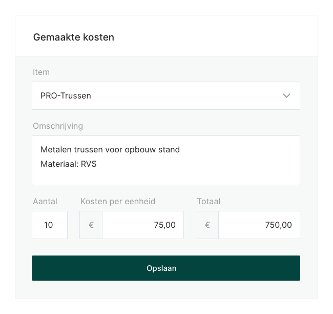 Koop jij materialen of diensten in bij anderen en belast je deze door aan je klant? Dan kun je gebruik maken van kosten op een opdracht. Iedereen die hier rechten voor heeft kan kosten boeken en hoeft alleen een leverancier en een inkoopprijs in te vullen. Werk je met marges op je producten? Dan kan meteen een verkoopprijs berekend worden en anders wordt de verkoopprijs door de teamleider op een later moment bepaald. Zo voorkom je gemaakte kosten die niet doorbelast worden, en zie je de kosten van een opdracht!