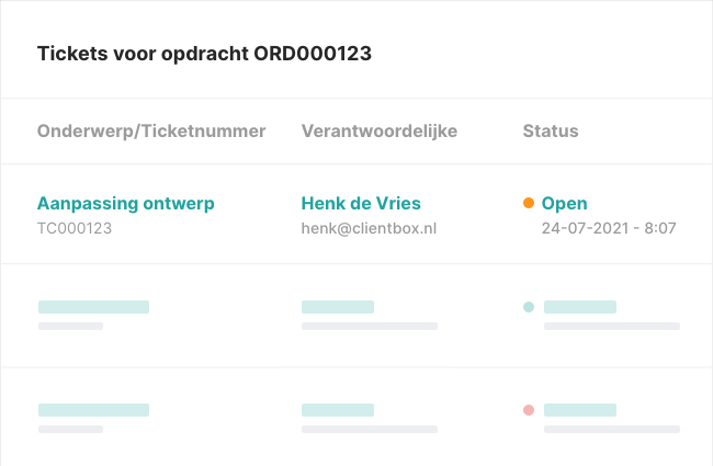 Een vraag, opmerking of probleem kan te maken hebben met een opdracht, offerte, factuur of abonnement. Afhankelijk van de modules die jij gebruikt kun je een ticket aan bijvoorbeeld een opdracht koppelen. Een ticket is dan terug te vinden onder de relatie, maar bijvoorbeeld ook onder de opdracht. Zo hebben jij en je teamgenoten alle informatie steeds overal bij de hand.