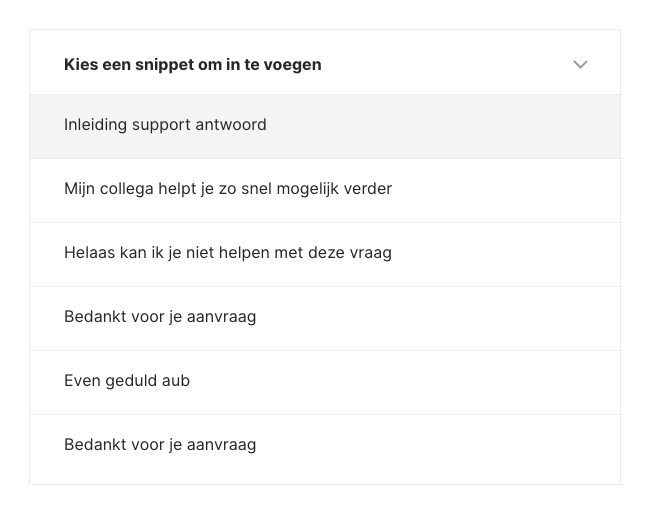 Heb je teksten die je regelmatig of vaak gebruikt? Dan kost het tijd om steeds opnieuw hetzelfde bericht te typen en dat is zonde van je tijd. Van teksten die je vaak gebruikt maak je eenvoudig een snippet zodat je die tekst snel kunt invoegen in een reactie op een ticket én zo voorkom je typo’s!
