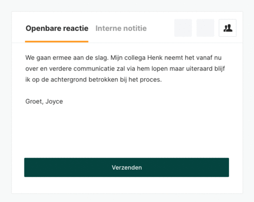 Je kunt er voor kiezen om binnen het ticketsysteem je tickets te verzenden in een klassieke ticketweergave, om zo chronologisch de conversatie te laten zien in het antwoord dat je verstuurd. Een andere mogelijkheid is om je antwoord eruit te laten zien als een e-mail zodat je klant optisch niet merkt dat je met een ticketsysteem werkt. Bij het verzenden kun je zelf je e-mailhandtekening wijzigingen.