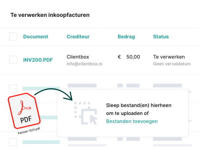 Inkoopfacturen upload je zelf en je kan leveranciers toestemming geven om deze rechtstreeks te mailen waardoor jij er geen werk meer aan hebt.
