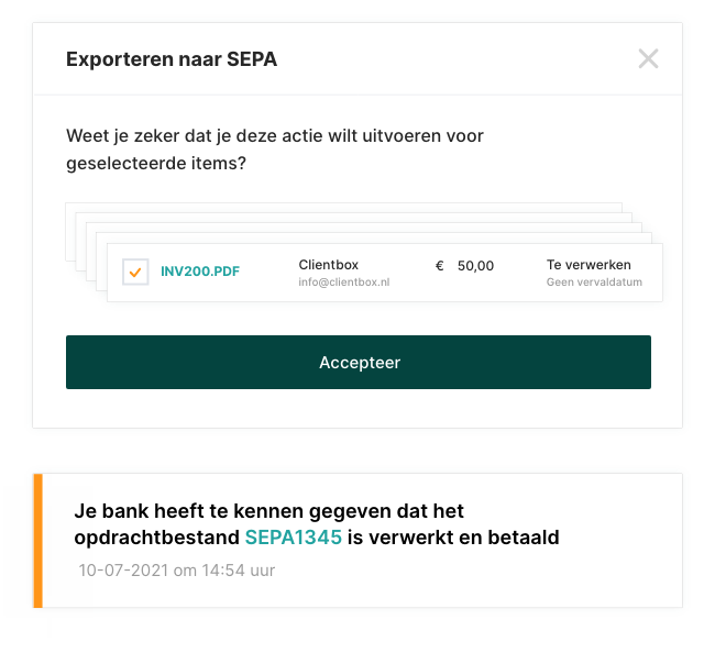 Zodra je de opdracht bij de bank hebt geupload worden alle geselecteerde inkoopfacturen in één keer betaald.