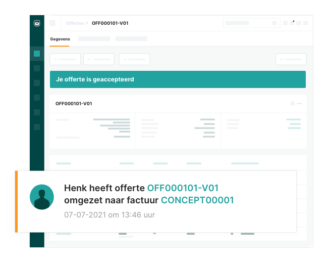 Je klant heeft de offerte goedgekeurd, dat is natuurlijk goed nieuws! Zodra een offerte is goedgekeurd kan je van de offerte een factuur maken. Met één klik zet je de offerte om naar een factuur. De factuur wordt eerst een concept zodat je eventueel nog aanpassingen kunt doen voordat je de factuur gaat verzenden.
